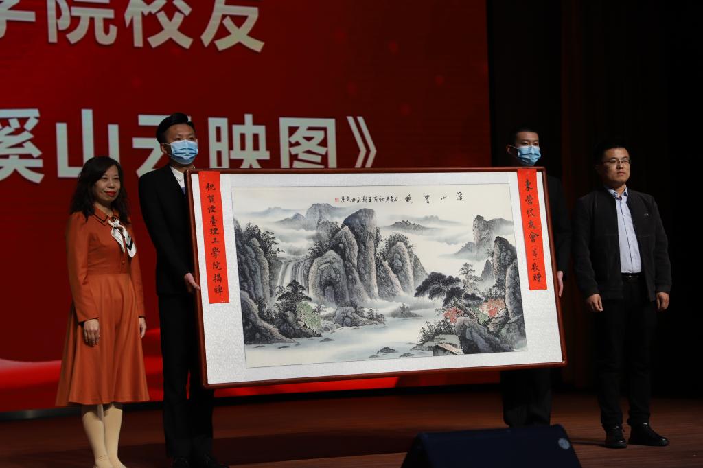 会上,学校为山东16地市校友工作召集人颁发聘书,并接受来自校友的捐赠,2009级法学专业学生王一名捐赠“华勋助学金”5万元,2004级汉语言文学专业学生周茂仲代表东营校友们赠送《溪山云映图》国画一幅。