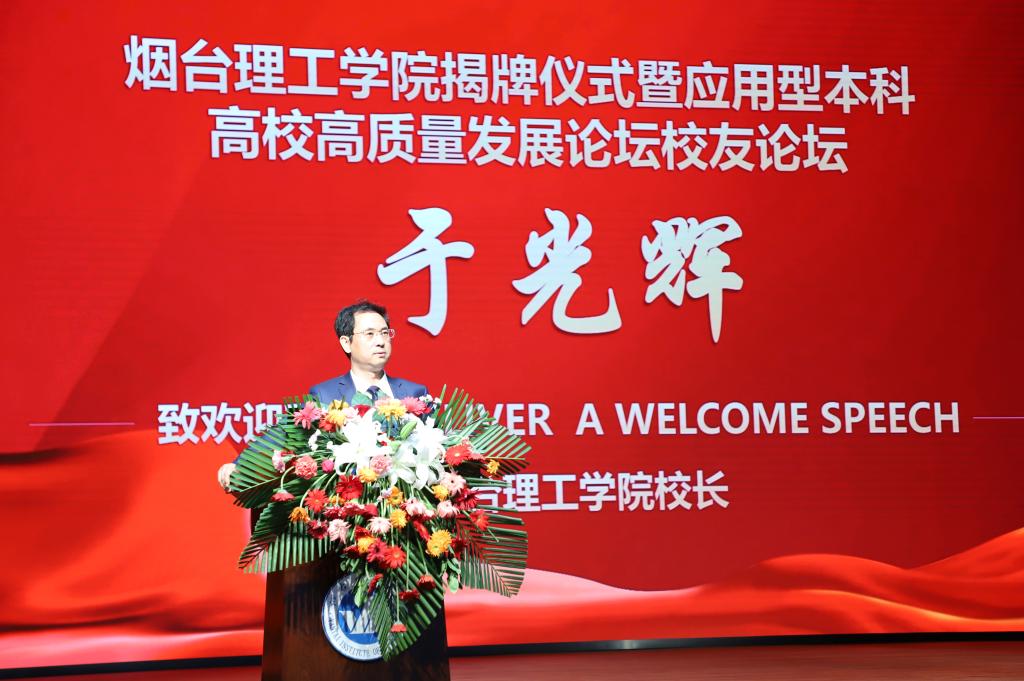 烟台理工学院董事长辛军为揭牌仪式发表致辞,校长于光辉作了题为《传承优势 创新发展——努力建设高水平地方性和应用型本科高校》的报告。