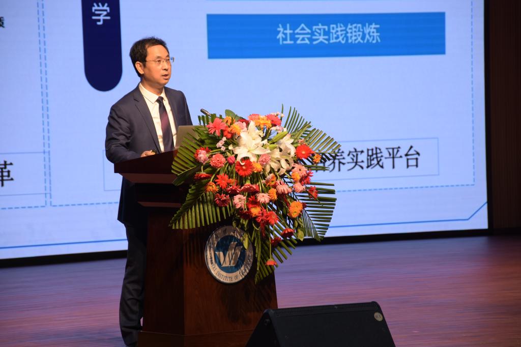 教育部学校规划建设发展中心创新发展处处长刘志敏致辞中对我校融入大局、找准定位、超前布局表示了赞赏。他说,应用型民办高校的发展应该具备大视野、新格局。产教融合、科教融合是学校发展的必经之路。