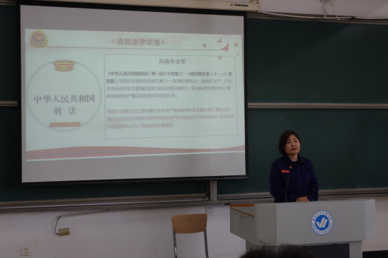 讲座中,队员王群以典型事例为证,生动而具体地讲述了消防法律法规、常见火灾隐患和火灾发生后如何扑灭初期火灾以及自救逃生的基本方法。她指出,要熟悉环境,暗记出口,提高“四个能力”,做到“三懂三会,火灾发生时,更要保持冷静,明辨方向,寻路逃生。