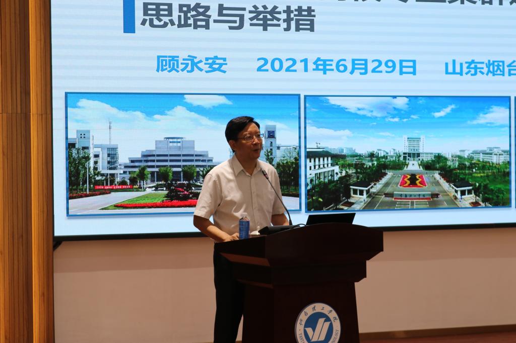为大力推进我校专业集群建设,促进学校高质量发展。6月29日上午,我校邀请常熟理工学院顾永安教授来我校指导专业集群建设工作并于三教六楼报告厅作了题为“应用型本科高校专业集群建设的思路与举措”专题报告。烟台理工学院校长于光辉教授、全体校领导以及中层以上干部、主任教授、教研室主任、以及学科带头人、教师代表参加了报告会,报告会由副校长苏春景教授主持。