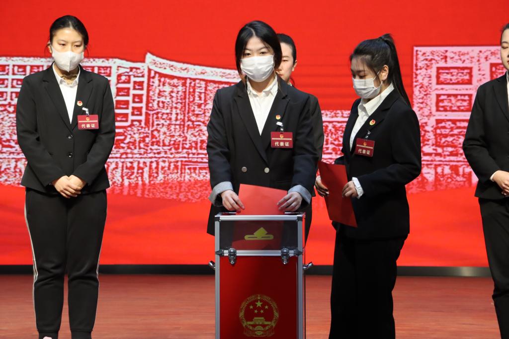 本次双代会由五个代表团组成,共有代表240名。大会审议通过了《共青团烟台理工学院委员会工作报告决议》《烟台理工学院第四届学生会工作报告决议》。216名与会团代表通过无记名投票选举产生了由17名委员组成的共青团烟台理工学院第一届委员会。216名与会学生代表通过无记名投票选举产生了5人组成的第五届学生会主席团。刘桂瑜同学代表新当选的第五届学生会主席团作表态发言。