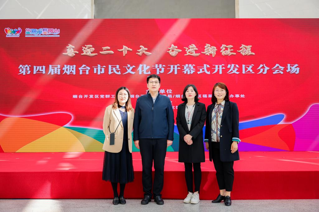 4月23日,第四届烟台市民文化节开发区分会场开幕式在福莱山市民文化公园(烟台开发区文化馆内群艺大厅)举行,开发区管委有关领导、相关部门单位负责人、文化艺术能人及优秀文化志愿者共同启动文化节。我校副校长夏毅,建筑工程学院副院长丛苏莉,团总支书记臧延云及部分师生代表参加了此次活动。