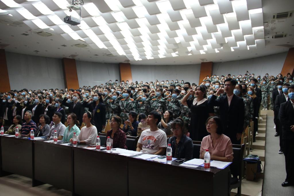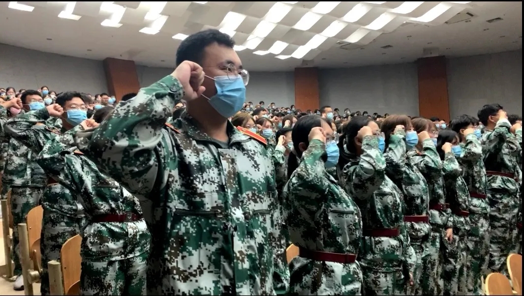 在宣誓环节,新生们肃然起立,举起右拳,庄严地进行宣誓,以坚定的眼神,响亮的呐喊向祖国立誓。他们的誓词中蕴含着爱国精神、奋斗精神和进取精神,立志牢记使命,艰苦奋斗,勇于承担,真正把爱国之志变成报国之行。