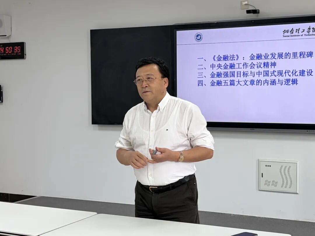 孙教授作为山东省决策咨询委员会专家、省人大常委会专家顾问、省政府研究室特邀研究员及泰山产业领军人才、金融高端人才,用独特的视角对中国式现代化进程中金融改革与发展进行了讲解。会议内容主要分为三大部分:一是金融业发展的里程碑,系统解读了《金融法》的核心意义和重要作用。二是中央金融工作会议精神,通过对历次全国金融工作会议制度逻辑的梳理,强调了其在精准研判金融形势、部署改革任务、防范化解系统性风险中的关键引领作用,为理解我国金融治理体系与治理能力现代化提供了清晰框架。三是金融强国目标与中国式现代化建设,他指出建设金融强国是服务实体经济、推动共同富裕、实现民族复兴的必然要求,需紧扣中国式现代化的本质要求,为中国式现代化建设注入强劲动力。